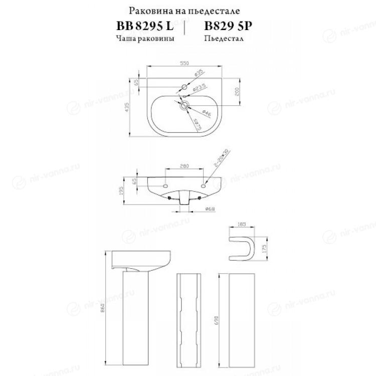 Раковина Belbagno Vella 50*43,5 с пьедесталом