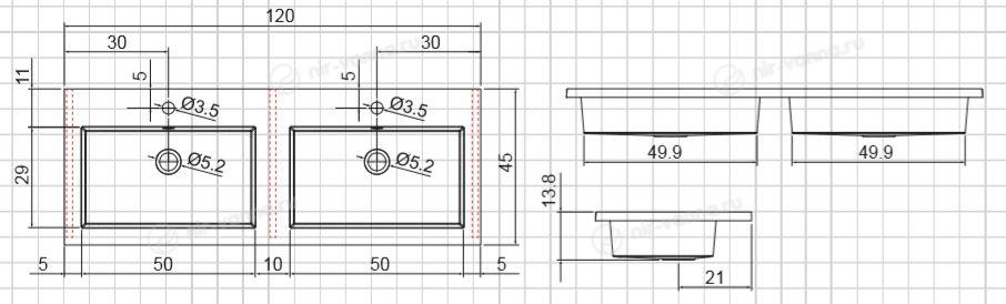 Раковина Цвет&Стиль Джерси 120*45 двойная
