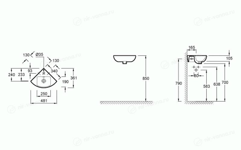Раковина Jacob Delafon Odeon Up 48*36 угловая