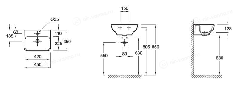 Раковина Jacob Delafon Struktura EGH011-00 45*35 без перелива