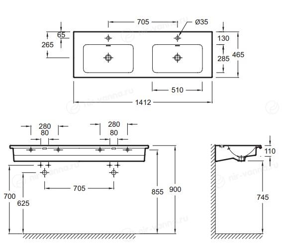 Раковина Jacob Delafon Terrace 120*49 двойная