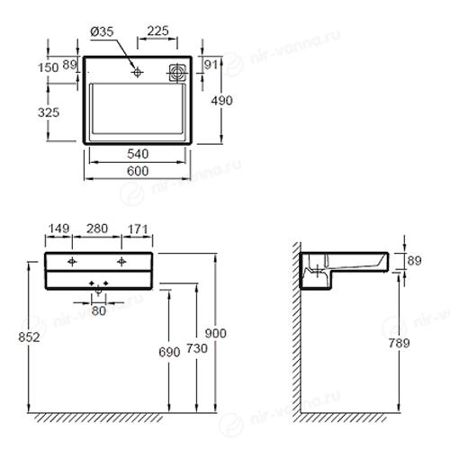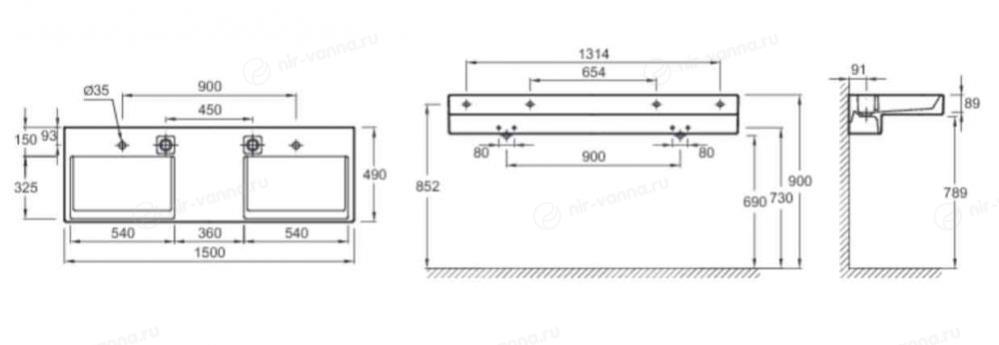Раковина Jacob Delafon Terrace 150*49 двойная с подсветкой