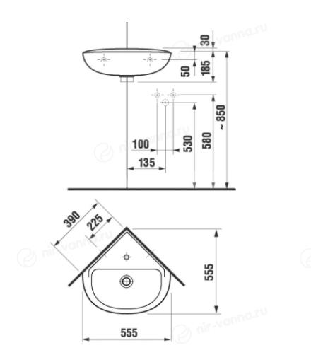 Раковина Jika Olymp Deep 55*56 угловая с полупьедесталом