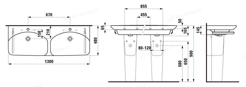 Раковина Laufen Palace 130*48 двойная с полупьедесталом