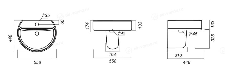 Раковина Sanita Luxe Best 55,8*44,8 с полупьедесталом Best