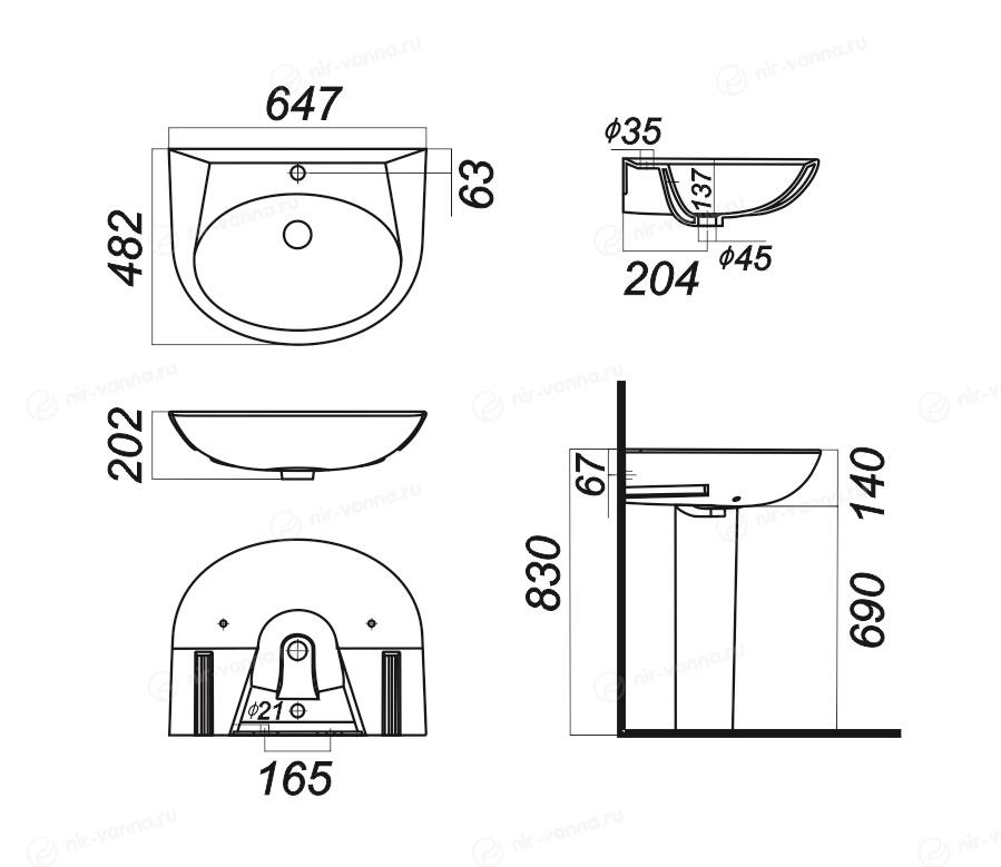 Раковина Sanita Luxe Classic 64,7*48,2 с пьедесталом