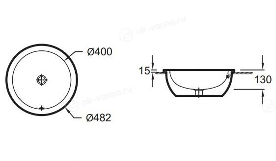 Встраиваемая раковина Jacob Delafon Vox 43,2*43,2 без обода с переливом круглая
