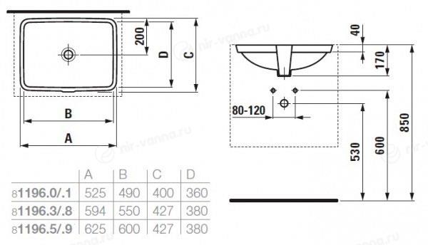 Встраиваемая раковина Laufen Рro S 59,5*43