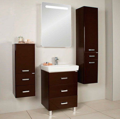прямоугольная тумба с раковиной Акватон сделает ванную комнату уютной и поможет рационально организовать пространство. Корпус мебели изготовлен из ДСП — сертифицированного, безопасного материала. При габаритах 60.5 см.х47.5 см конструкция не выглядит массивной, но благодаря удобным полкам вмещает много вещей. Высота 84.5 см позволяет удобно доставать до раковины. Фасады тумбы выполнены из МДФ. Их (темно-коричневый) и элегантная форма гармонично сочетаются между собой. За поверхностями легко ухаживать. Их рекомендуется протирать мягкой губкой или тканевой салфеткой с нейтральным моющим средством без абразивных частиц.