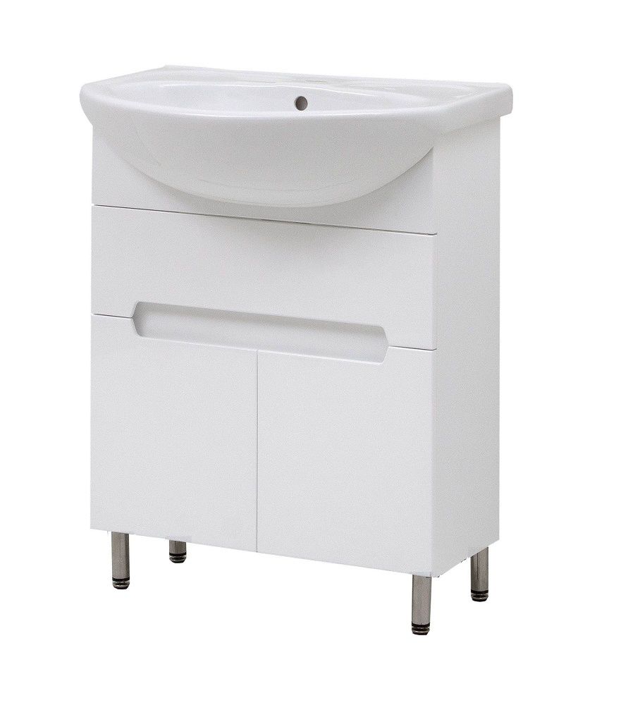 прямоугольная тумба с раковиной Cerutti Spa сделает ванную комнату уютной и поможет рационально организовать пространство. Корпус мебели изготовлен из ЛДСП — сертифицированного, безопасного материала. При габаритах 61 см.х45 см конструкция не выглядит массивной, но благодаря удобным полкам вмещает много вещей. Высота 87 см позволяет удобно доставать до раковины. Фасады тумбы выполнены из МДФ. Их (белый) и элегантная форма гармонично сочетаются между собой. За поверхностями легко ухаживать. Их рекомендуется протирать мягкой губкой или тканевой салфеткой с нейтральным моющим средством без абразивных частиц.