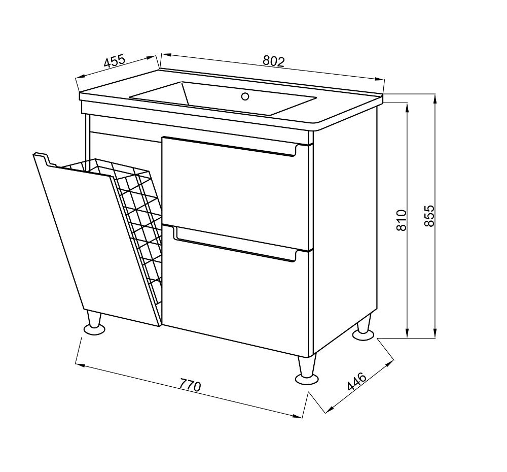 Тумба с раковиной Cerutti Spa Пьемонт 80 с бельевой корзиной, белый глянец