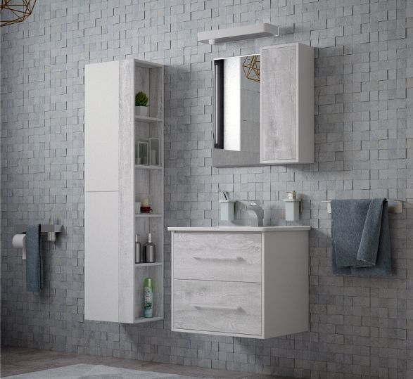 прямоугольная тумба с раковиной Corozo сделает ванную комнату уютной и поможет рационально организовать пространство. Корпус мебели изготовлен из МДФ — сертифицированного, безопасного материала. При габаритах 85 см.х47 см конструкция не выглядит массивной, но благодаря удобным полкам вмещает много вещей. Высота 58 см позволяет удобно доставать до раковины. Фасады тумбы выполнены из МДФ. Их (белый, дерево) и элегантная форма гармонично сочетаются между собой. За поверхностями легко ухаживать. Их рекомендуется протирать мягкой губкой или тканевой салфеткой с нейтральным моющим средством без абразивных частиц.