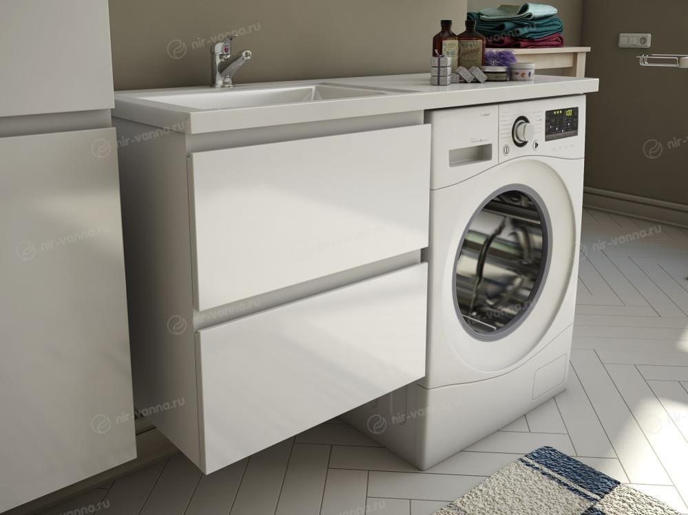 Тумба с раковиной Эстет Dallas Luxe 110 белая/на выбор L под стиральную машину 2 ящика подвесная