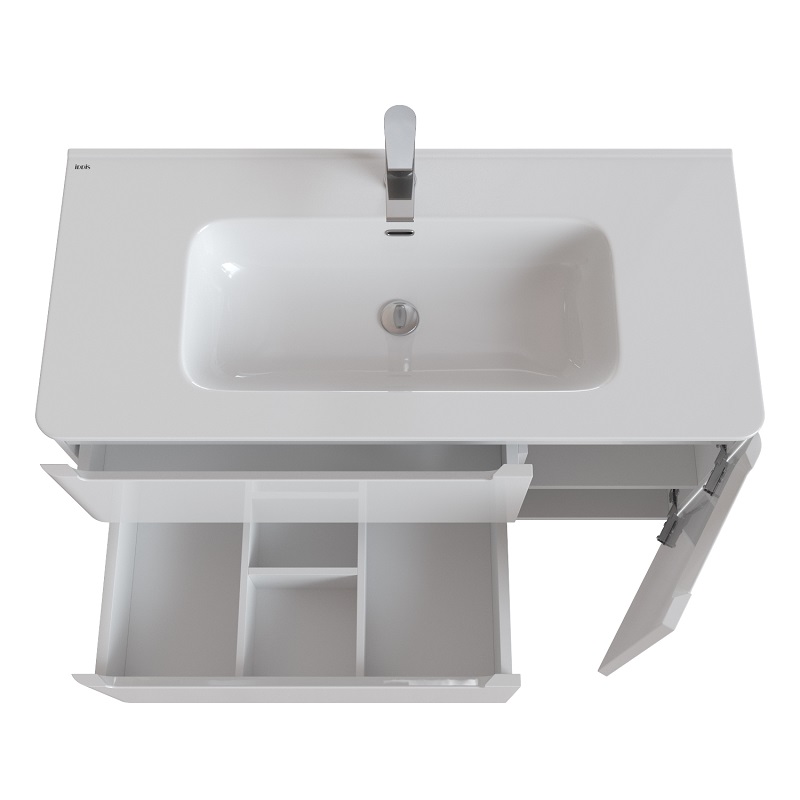 прямоугольная тумба с раковиной Iddis сделает ванную комнату уютной и поможет рационально организовать пространство. Корпус мебели изготовлен из МДФ — сертифицированного, безопасного материала. При габаритах 100 см.х47 см конструкция не выглядит массивной, но благодаря удобным полкам вмещает много вещей. Высота 50 см позволяет удобно доставать до раковины. Фасады тумбы выполнены из МДФ. Их (белый) и элегантная форма гармонично сочетаются между собой. За поверхностями легко ухаживать. Их рекомендуется протирать мягкой губкой или тканевой салфеткой с нейтральным моющим средством без абразивных частиц.