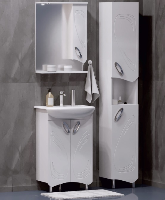 прямоугольная тумба с раковиной Koral сделает ванную комнату уютной и поможет рационально организовать пространство. Корпус мебели изготовлен из МДФ — сертифицированного, безопасного материала. При габаритах 50 см.х41 см конструкция не выглядит массивной, но благодаря удобным полкам вмещает много вещей. Высота 85 см позволяет удобно доставать до раковины. Фасады тумбы выполнены из МДФ. Их (белый) и элегантная форма гармонично сочетаются между собой. За поверхностями легко ухаживать. Их рекомендуется протирать мягкой губкой или тканевой салфеткой с нейтральным моющим средством без абразивных частиц.
