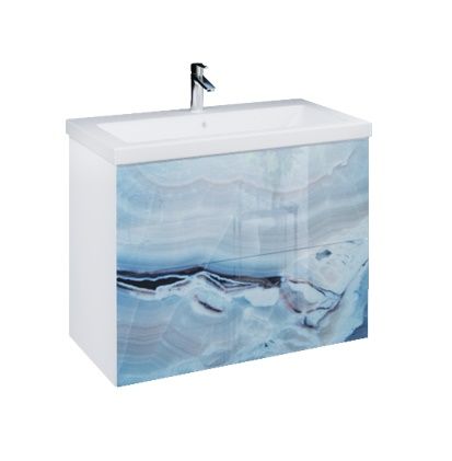 прямоугольная тумба с раковиной MarkaOne сделает ванную комнату уютной и поможет рационально организовать пространство. Корпус мебели изготовлен из МДФ — сертифицированного, безопасного материала. При габаритах 80 см.х47 см конструкция не выглядит массивной, но благодаря удобным полкам вмещает много вещей. Высота 65 см позволяет удобно доставать до раковины. Фасады тумбы выполнены из стекло. Их (белый, синий) и элегантная форма гармонично сочетаются между собой. За поверхностями легко ухаживать. Их рекомендуется протирать мягкой губкой или тканевой салфеткой с нейтральным моющим средством без абразивных частиц.