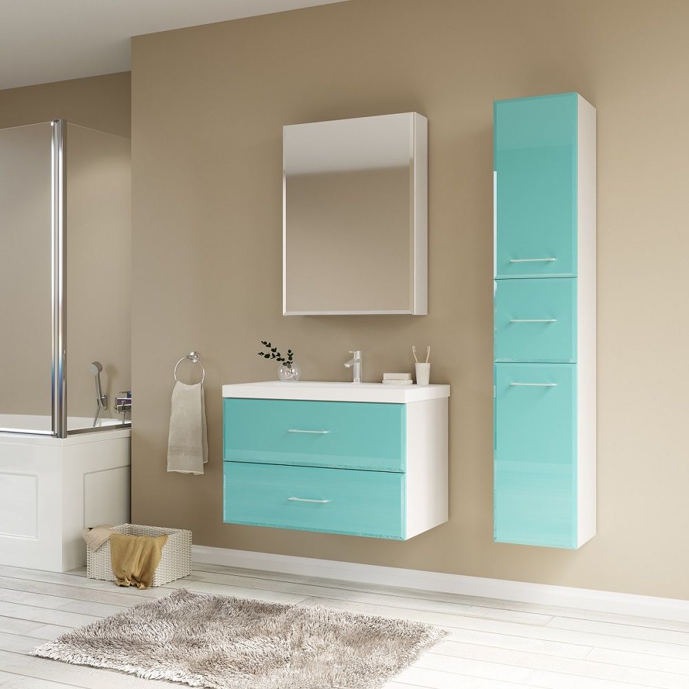 прямоугольная тумба с раковиной MarkaOne сделает ванную комнату уютной и поможет рационально организовать пространство. Корпус мебели изготовлен из МДФ — сертифицированного, безопасного материала. При габаритах 90 см.х45 см конструкция не выглядит массивной, но благодаря удобным полкам вмещает много вещей. Высота 75 см позволяет удобно доставать до раковины. Фасады тумбы выполнены из стекло. Их (белый, бирюзовый) и элегантная форма гармонично сочетаются между собой. За поверхностями легко ухаживать. Их рекомендуется протирать мягкой губкой или тканевой салфеткой с нейтральным моющим средством без абразивных частиц.