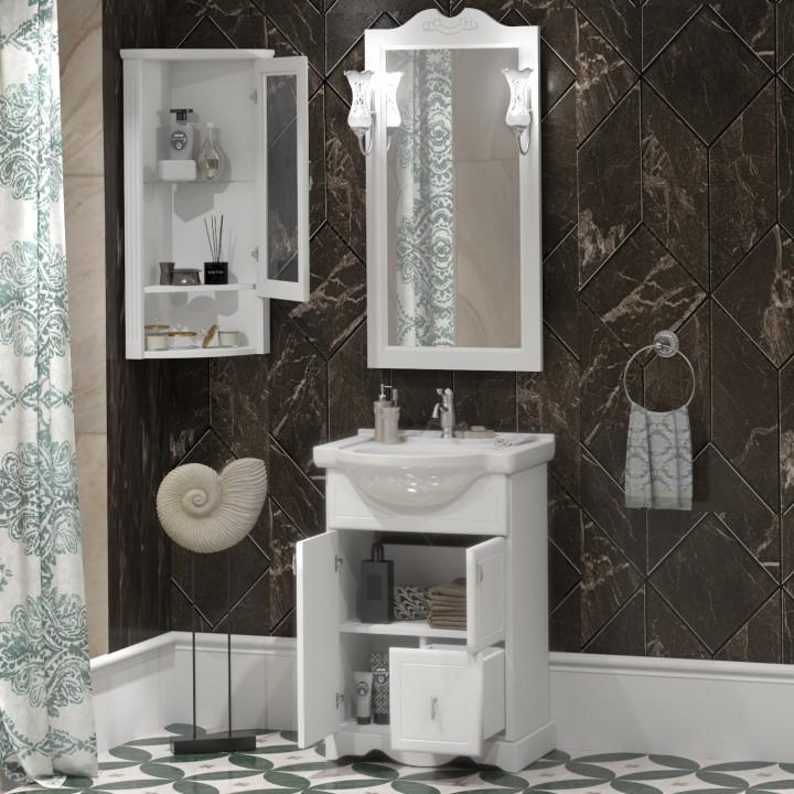 прямоугольная тумба с раковиной Opadiris сделает ванную комнату уютной и поможет рационально организовать пространство. Корпус мебели изготовлен из ЛДСП — сертифицированного, безопасного материала. При габаритах 56 см.х45 см конструкция не выглядит массивной, но благодаря удобным полкам вмещает много вещей. Высота 88 см позволяет удобно доставать до раковины. Фасады тумбы выполнены из Массив бука. Их (белый) и элегантная форма гармонично сочетаются между собой. За поверхностями легко ухаживать. Их рекомендуется протирать мягкой губкой или тканевой салфеткой с нейтральным моющим средством без абразивных частиц.