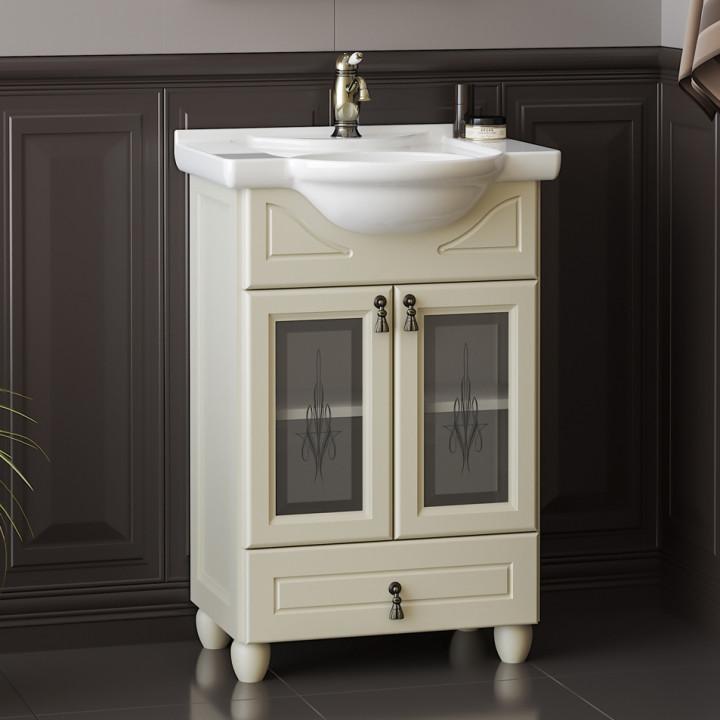 прямоугольная тумба с раковиной Opadiris сделает ванную комнату уютной и поможет рационально организовать пространство. Корпус мебели изготовлен из ЛДСП — сертифицированного, безопасного материала. При габаритах 56 см.х45 см конструкция не выглядит массивной, но благодаря удобным полкам вмещает много вещей. Высота 88 см позволяет удобно доставать до раковины. Фасады тумбы выполнены из стекло, массив бука. Их (Бежевый) и элегантная форма гармонично сочетаются между собой. За поверхностями легко ухаживать. Их рекомендуется протирать мягкой губкой или тканевой салфеткой с нейтральным моющим средством без абразивных частиц.