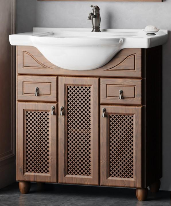 прямоугольная тумба с раковиной Opadiris сделает ванную комнату уютной и поможет рационально организовать пространство. Корпус мебели изготовлен из ЛДСП — сертифицированного, безопасного материала. При габаритах 77 см.х51 см конструкция не выглядит массивной, но благодаря удобным полкам вмещает много вещей. Высота 89 см позволяет удобно доставать до раковины. Фасады тумбы выполнены из Массив бука. Их (темное дерево) и элегантная форма гармонично сочетаются между собой. За поверхностями легко ухаживать. Их рекомендуется протирать мягкой губкой или тканевой салфеткой с нейтральным моющим средством без абразивных частиц.