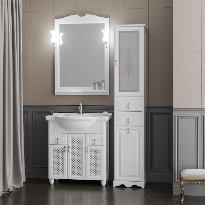 прямоугольная тумба с раковиной Opadiris сделает ванную комнату уютной и поможет рационально организовать пространство. Корпус мебели изготовлен из ЛДСП — сертифицированного, безопасного материала. При габаритах 87 см.х51 см конструкция не выглядит массивной, но благодаря удобным полкам вмещает много вещей. Высота 89 см позволяет удобно доставать до раковины. Фасады тумбы выполнены из Массив бука. Их (белый) и элегантная форма гармонично сочетаются между собой. За поверхностями легко ухаживать. Их рекомендуется протирать мягкой губкой или тканевой салфеткой с нейтральным моющим средством без абразивных частиц.