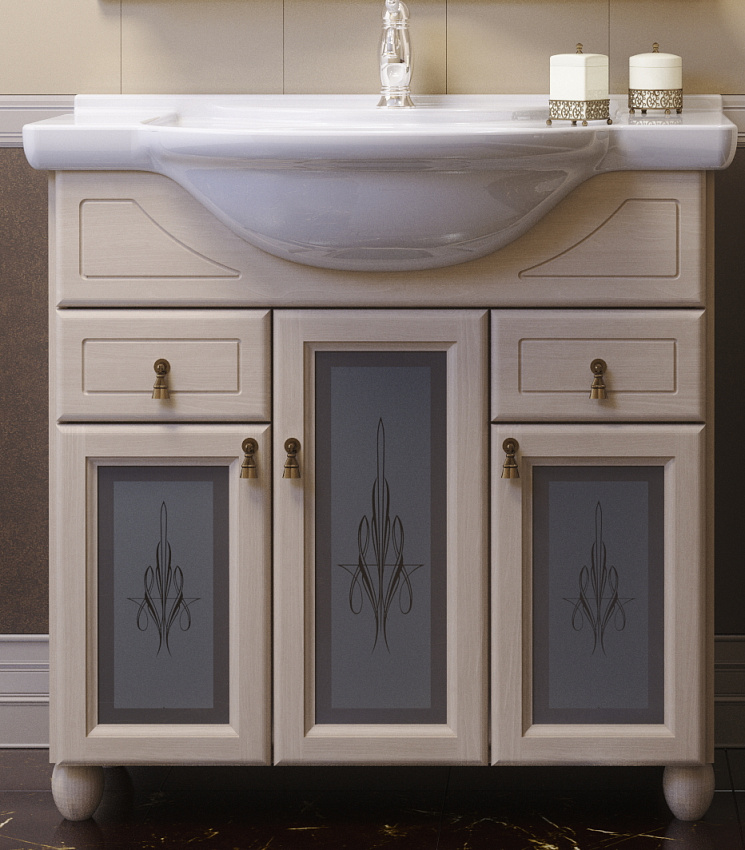 прямоугольная тумба с раковиной Opadiris сделает ванную комнату уютной и поможет рационально организовать пространство. Корпус мебели изготовлен из ЛДСП — сертифицированного, безопасного материала. При габаритах 87 см.х51 см конструкция не выглядит массивной, но благодаря удобным полкам вмещает много вещей. Высота 89 см позволяет удобно доставать до раковины. Фасады тумбы выполнены из стекло, массив бука. Их (Бежевый) и элегантная форма гармонично сочетаются между собой. За поверхностями легко ухаживать. Их рекомендуется протирать мягкой губкой или тканевой салфеткой с нейтральным моющим средством без абразивных частиц.
