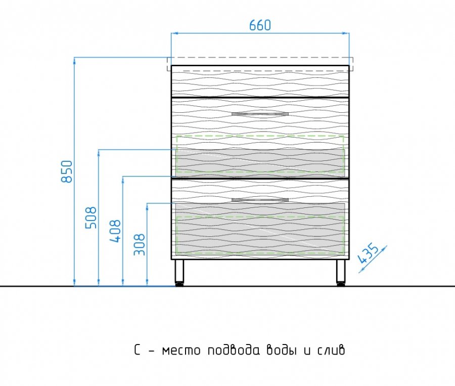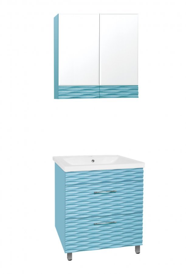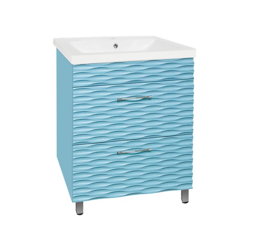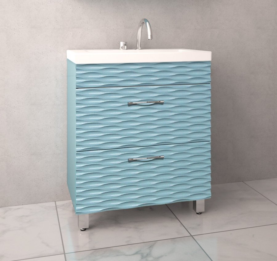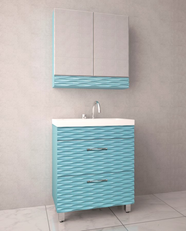 прямоугольная тумба с раковиной Style Line сделает ванную комнату уютной и поможет рационально организовать пространство. Корпус мебели изготовлен из МДФ — сертифицированного, безопасного материала. При габаритах 70 см.х45 см конструкция не выглядит массивной, но благодаря удобным полкам вмещает много вещей. Высота 85 см позволяет удобно доставать до раковины. Фасады тумбы выполнены из МДФ. Их (аквамарин) и элегантная форма гармонично сочетаются между собой. За поверхностями легко ухаживать. Их рекомендуется протирать мягкой губкой или тканевой салфеткой с нейтральным моющим средством без абразивных частиц.