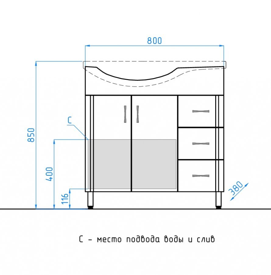 прямоугольная тумба с раковиной Style Line сделает ванную комнату уютной и поможет рационально организовать пространство. Корпус мебели изготовлен из ДСП — сертифицированного, безопасного материала. При габаритах 83 см.х51.5 см конструкция не выглядит массивной, но благодаря удобным полкам вмещает много вещей. Высота 85 см позволяет удобно доставать до раковины. Фасады тумбы выполнены из МДФ. Их (белый глянец) и элегантная форма гармонично сочетаются между собой. За поверхностями легко ухаживать. Их рекомендуется протирать мягкой губкой или тканевой салфеткой с нейтральным моющим средством без абразивных частиц.