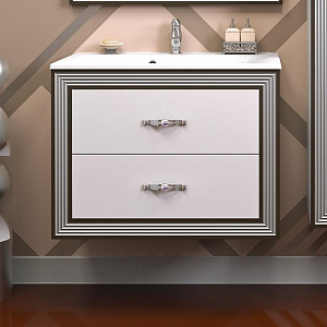 Тумба с раковиной Opadiris Карат 80 белый глянец с серебряной патиной