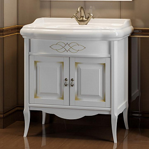 Тумба с раковиной Opadiris Лоренцо 80 белая с бежевой патиной