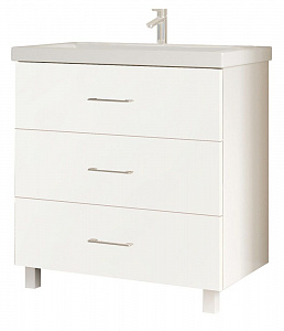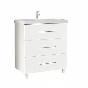 Тумба с раковиной MarkaOne Mix 80Н с 3-мя ящиками, белый глянец (12,8 см длина ручки)