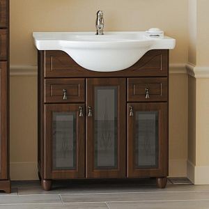 Тумба с раковиной Opadiris Тибет 80 антикварный орех (фасад с художественным стеклом)