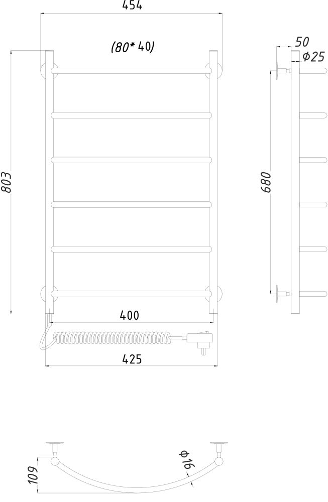 Полотенцесушитель электрический Тругор Пэк 5 80x40