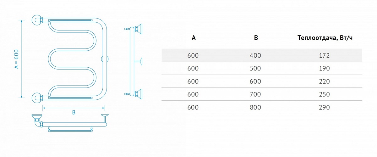 Полотенцесушитель крепится на стену. Габариты 60х50 см. см позволяют выполнить установку как вместо штатного змеевика, так и в любом свободном месте санузла.