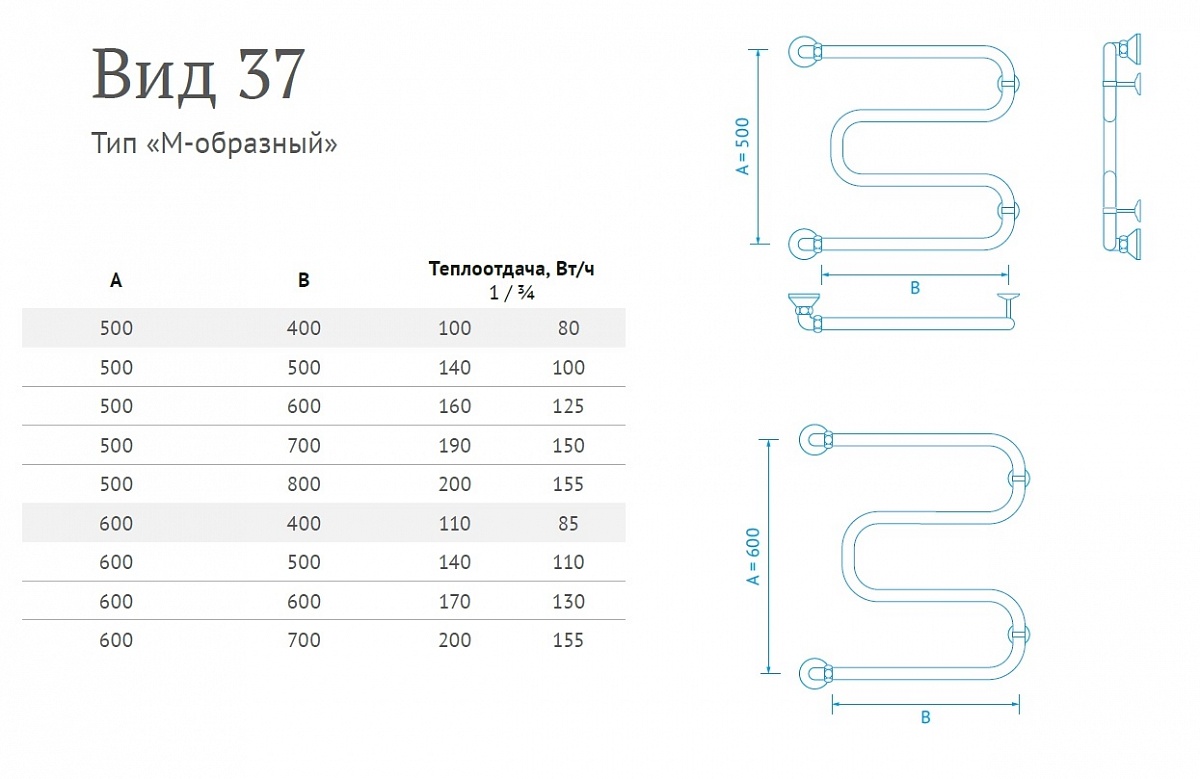 Полотенцесушитель Вид 37 (1") М-образный 60*40 (некомплект)