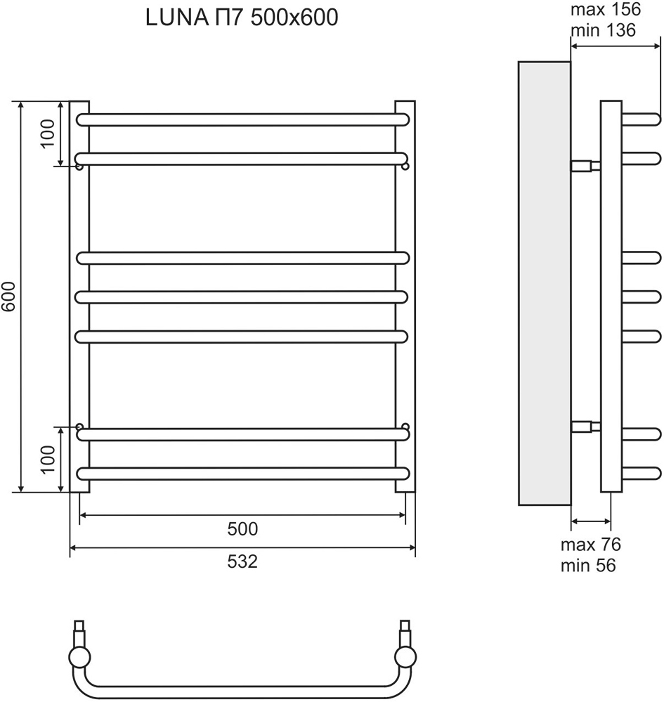 Полотенцесушитель водяной Lemark Luna П7 50x60