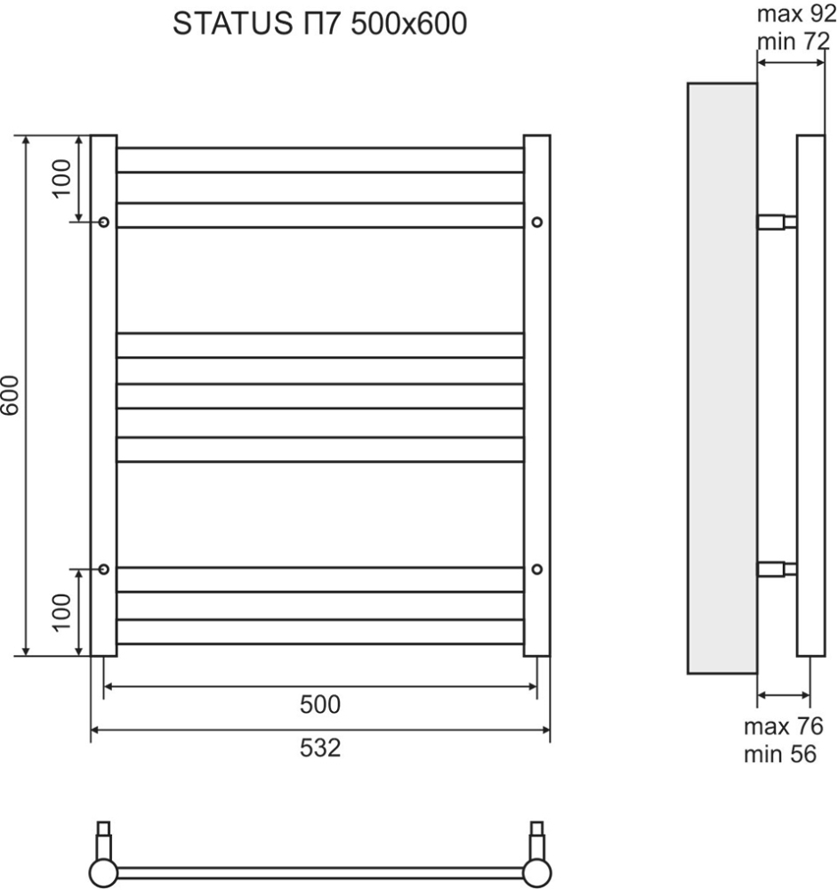 Полотенцесушитель крепится на стену. Габариты 60х53.2 см. см позволяют выполнить установку как вместо штатного змеевика, так и в любом свободном месте санузла.