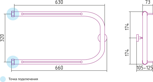 Полотенцесушитель крепится на стену. Габариты 34.799999999999997х66 см. см позволяют выполнить установку как вместо штатного змеевика, так и в любом свободном месте санузла.