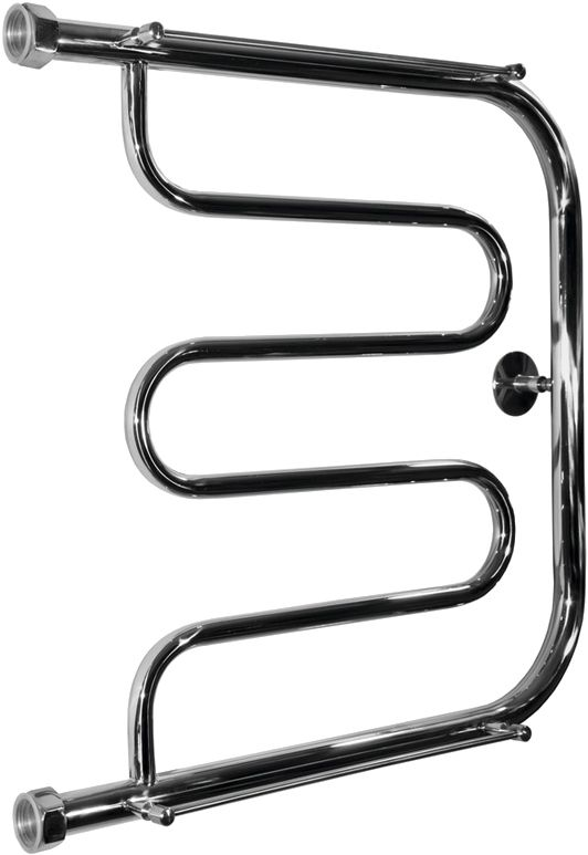 Полотенцесушитель крепится на стену. Габариты 60х50 см. см позволяют выполнить установку как вместо штатного змеевика, так и в любом свободном месте санузла.