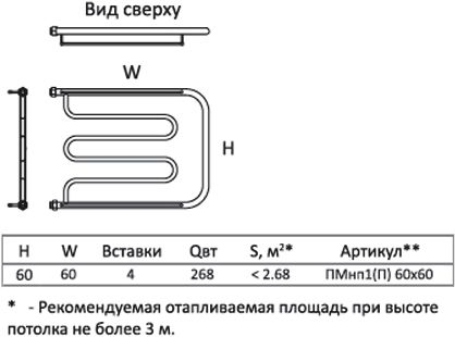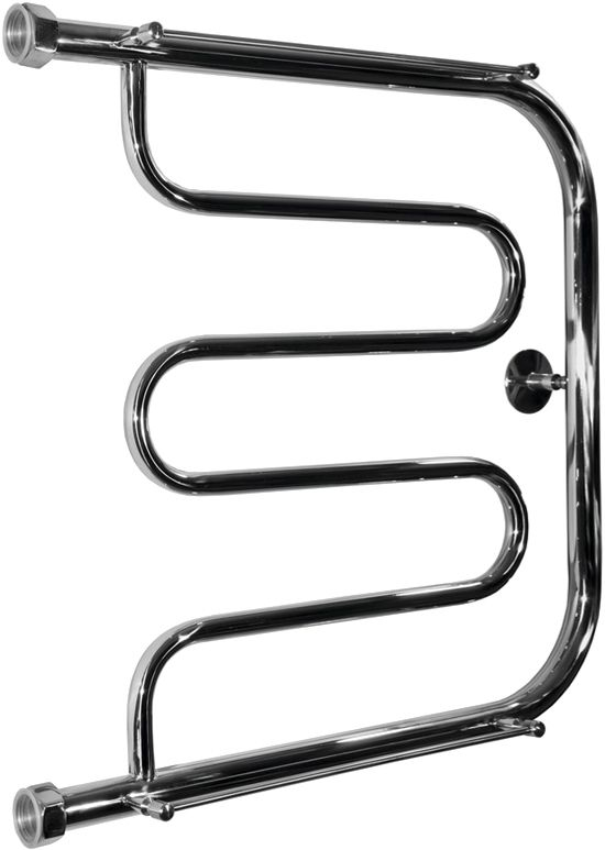 Полотенцесушитель крепится на стену. Габариты 60х60 см. см позволяют выполнить установку как вместо штатного змеевика, так и в любом свободном месте санузла.
