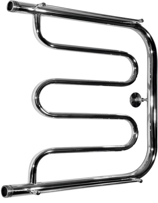 Полотенцесушитель крепится на стену. Габариты 50х40 см. см позволяют выполнить установку как вместо штатного змеевика, так и в любом свободном месте санузла.