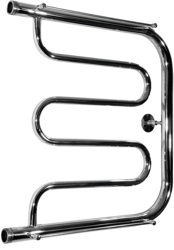 Полотенцесушитель крепится на стену. Габариты 60х60 см. см позволяют выполнить установку как вместо штатного змеевика, так и в любом свободном месте санузла.