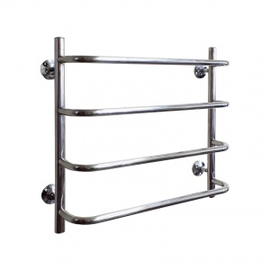 Полотенцесушитель крепится на стену. Габариты 50х50 см. см позволяют выполнить установку как вместо штатного змеевика, так и в любом свободном месте санузла.