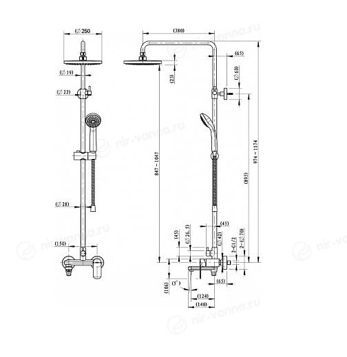 Душевая стойка Bravat Opal F6125183CP-A3-RUS с изливом