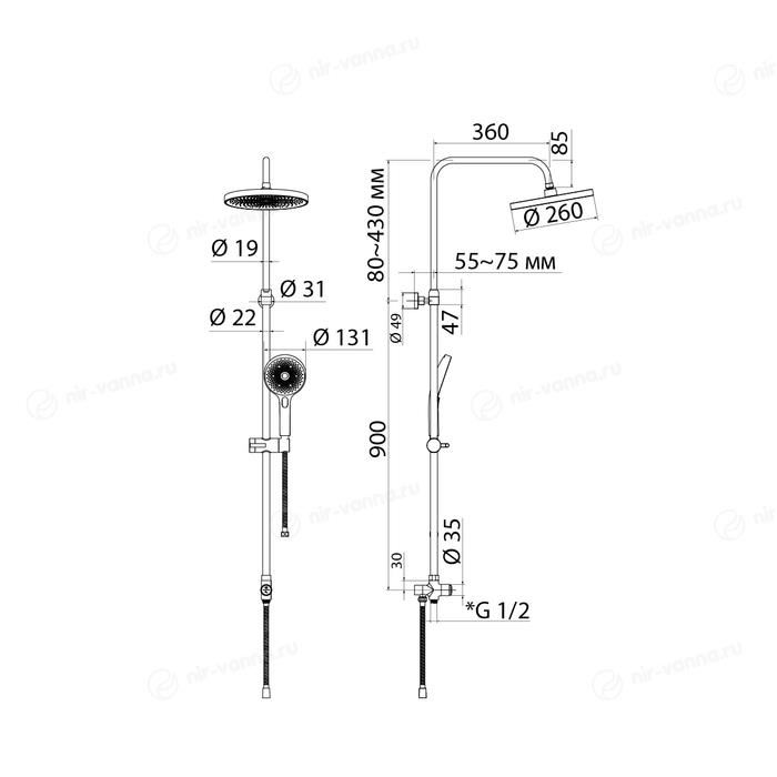 Душевая стойка Iddis SpaHome с верхней лейкой