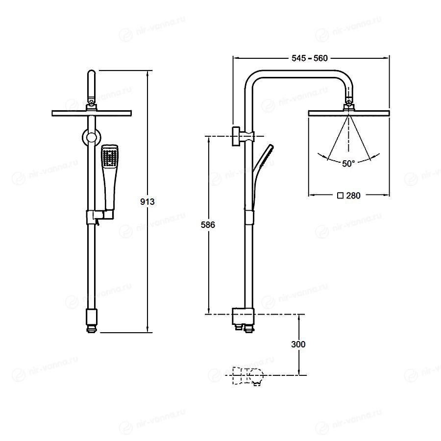 Душевая стойка Jacob Delafon EO с верхним душем квадрат E11716-CP