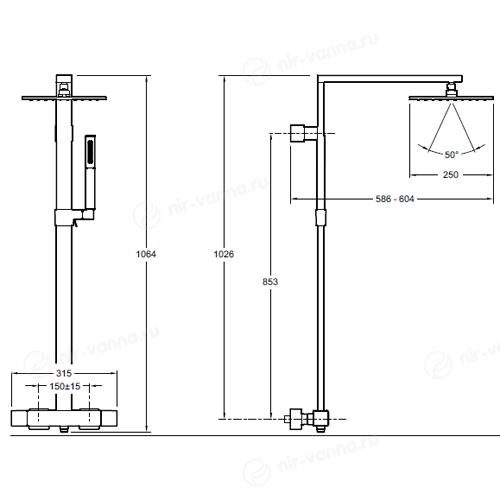 Душевая стойка Jacob Delafon Strayt с термостатом E98321-CP