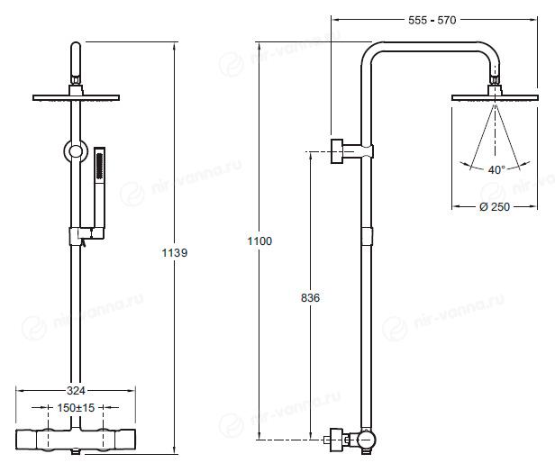 Душевая стойка Jacob Delafon Toobi с термостатом E8993-CP