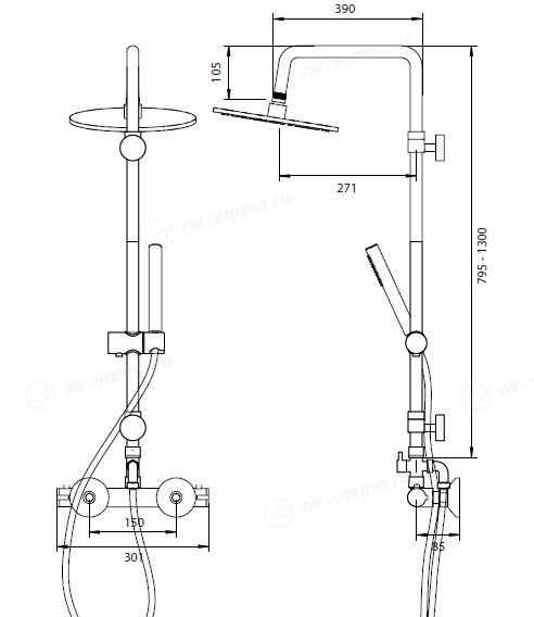 Душевая стойка Omnires Mini MI1544-X/K с термостатом MI1544-X-KCR