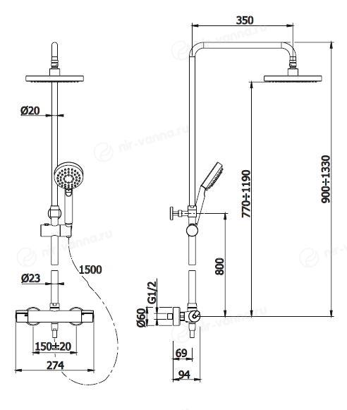 Душевая стойка Omnires Y Y1244 X/6/K с термостатом Y1244X-6-KCR